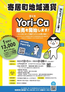 トーアンツアーズでは、12月1日に寄居町で販売された地域通貨『Yori-ca』をご利用いただけます。